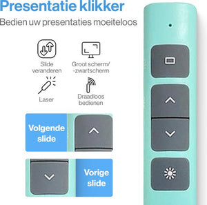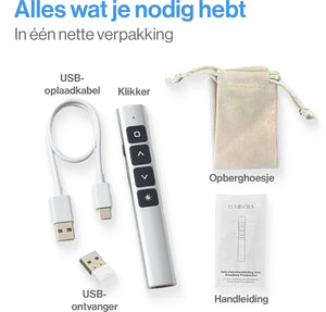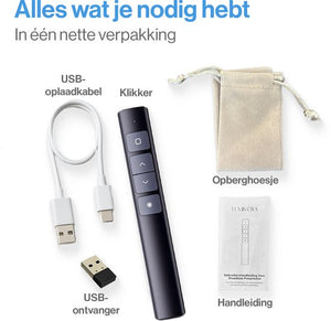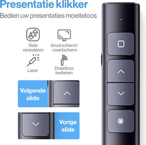 - Laserpointer voor duidelijk aanwijzen op het scherm