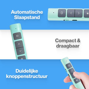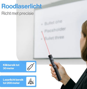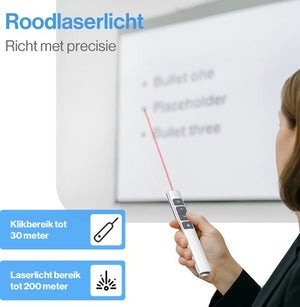 De heldere laser zorgt ervoor dat je vanuit elke hoek van de ruimte belangrijke punten duidelijk kunt markeren. Perfect voor docenten, trainers, sprekers en professionals.